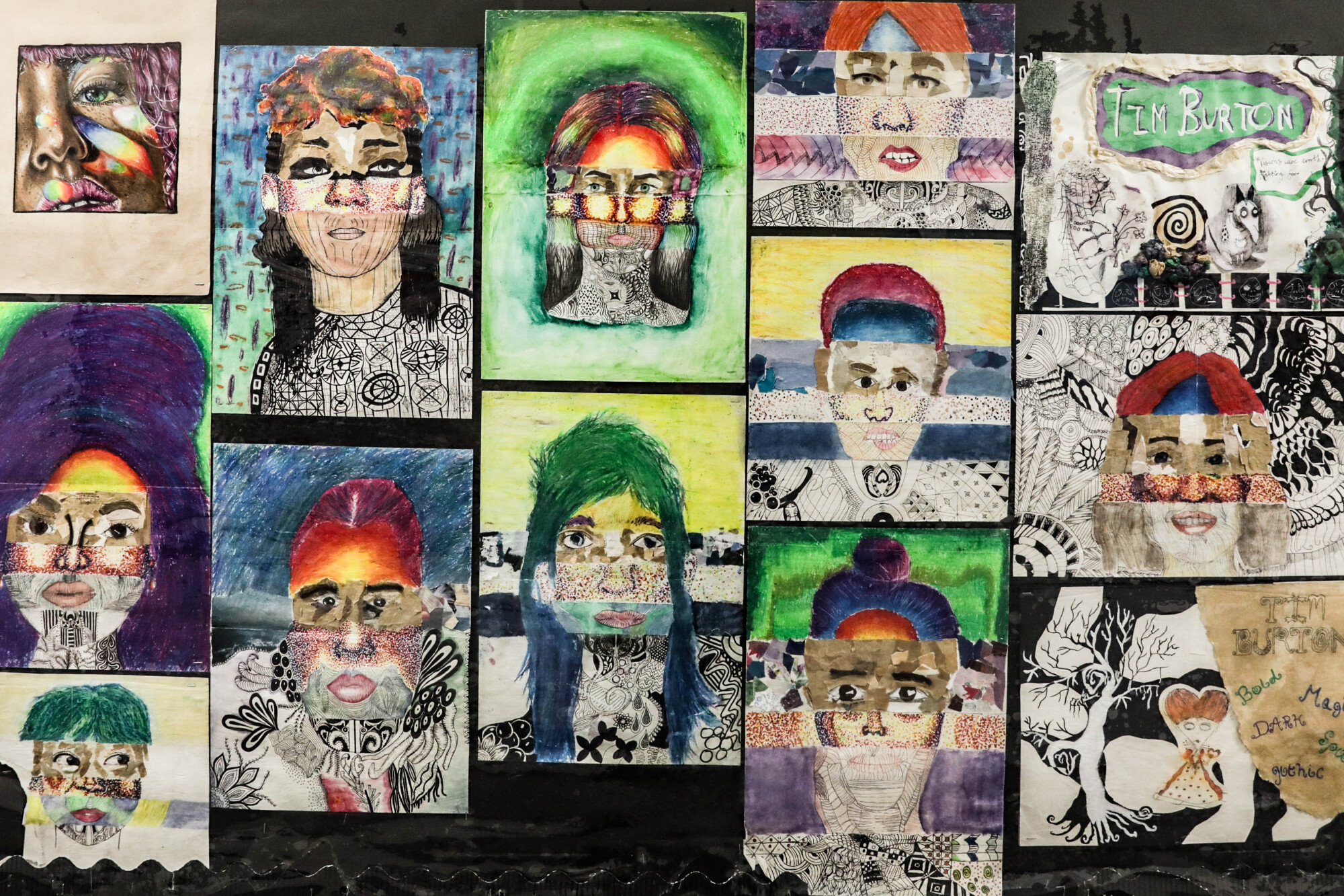In Years 7–9, students build core artistic skills and creative confidence. Topics include formal elements like line, tone, texture and colour, alongside project themes such as sea-life textures, African textiles and fantasy cities. Work includes drawing, print-making, sculpture, mixed media and digital art.