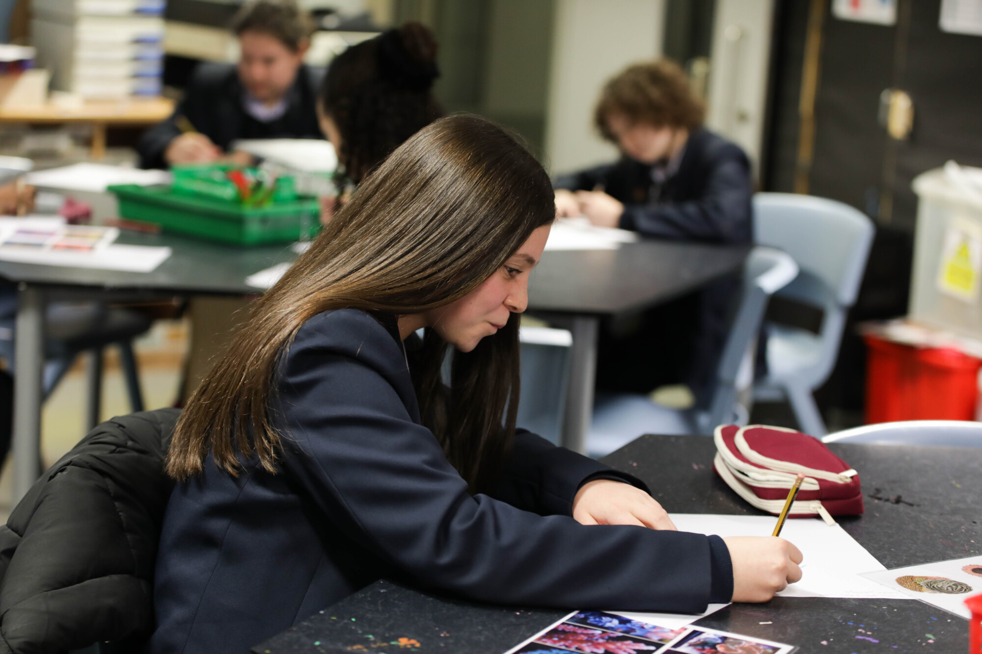 Assessment is carefully integrated into the curriculum. At GCSE, students produce a portfolio (60%) and sit a final, externally set exam (40%). Across all levels, students receive regular feedback that supports progress, encourages reflection and helps refine skills. Sketchbooks and project journals are used to track development and artistic thinking.